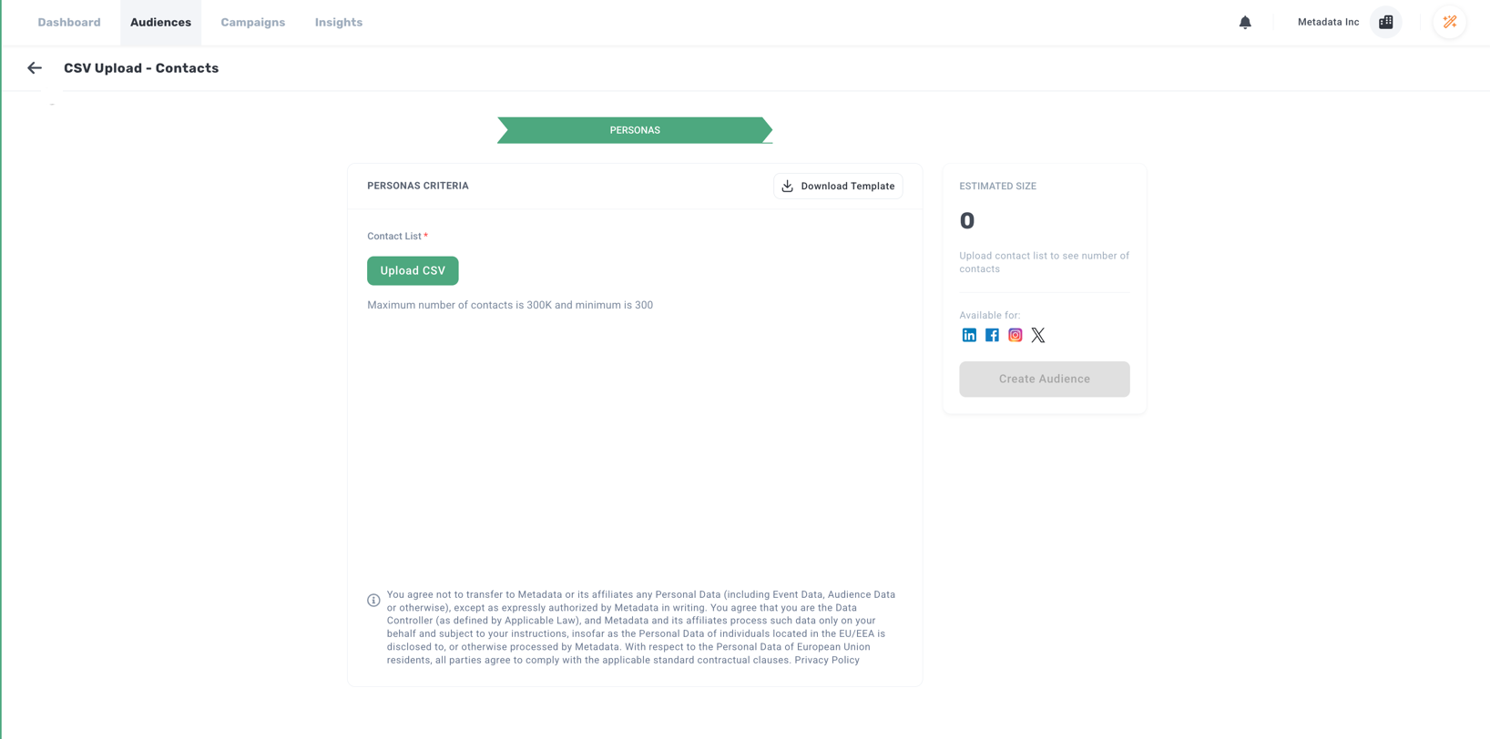 Please note, for Contact List CSV audiences, email is the only parameter we upload to LinkedIn and Facebook to ensure the best targeting.