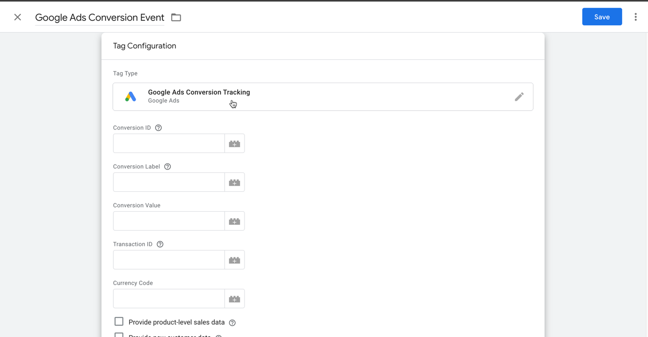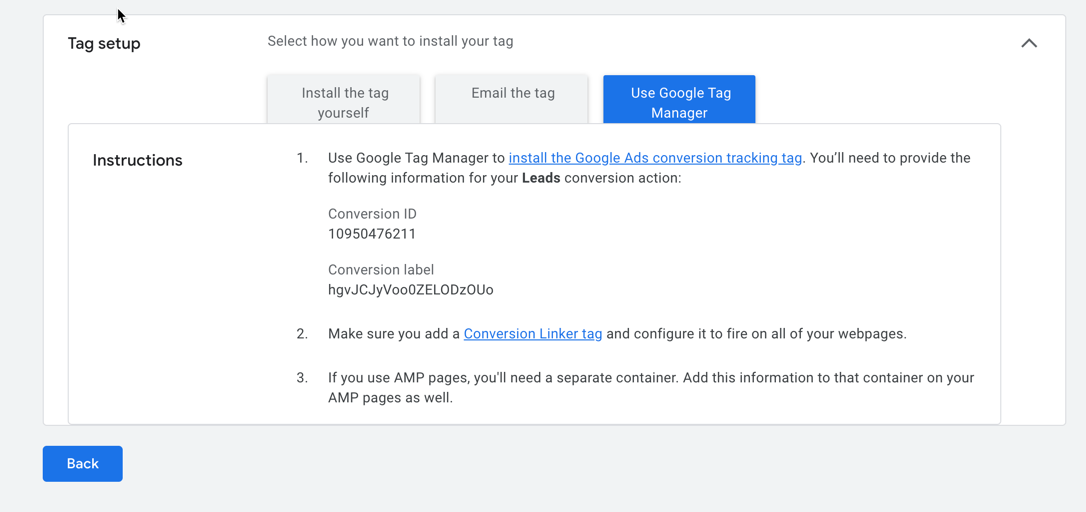 Configure the tag using Google Ads Conversion Tracking