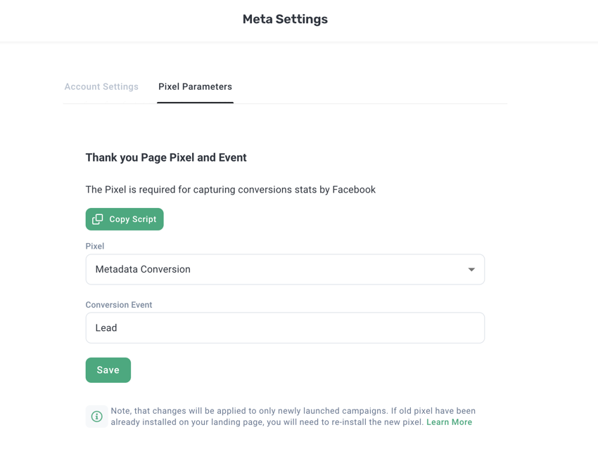 When creating a Landing Page offer and mapping to your Landing Page the Metadata Pixel Script that is placed on the page is triggered once someone sees the Ad -> clicks -> fills the form on the landing page.