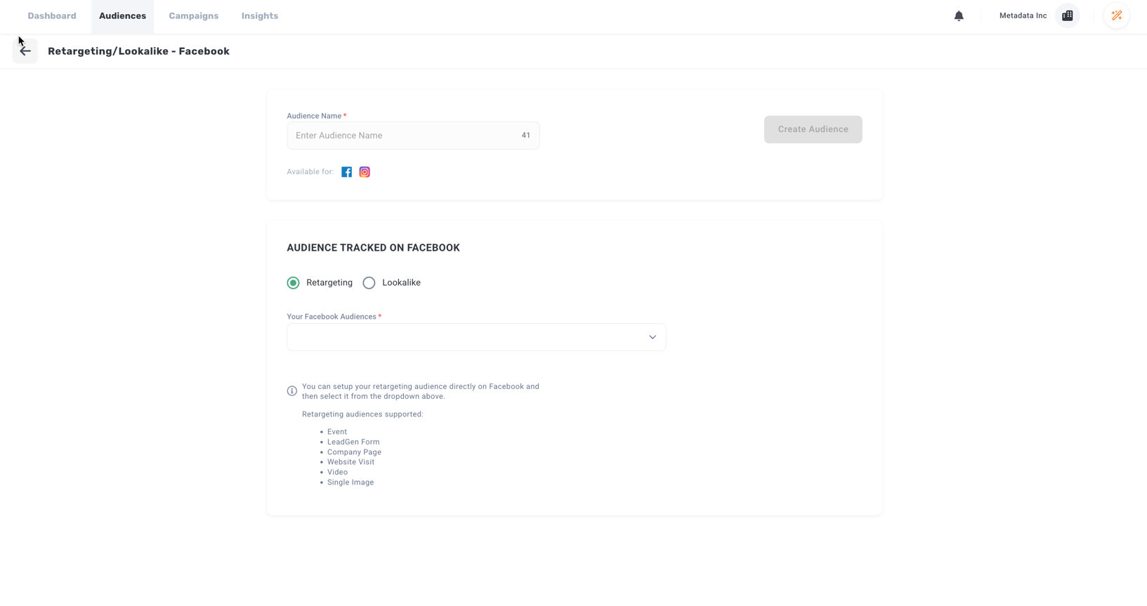 Target audiences that have shown interest in your brand (visited your website) using Facebook Retargeting audiences.