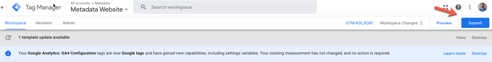 Log into your Google Tag Manager and select the container for your website.