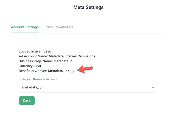 6. Once this is completed please reconnect the Meta integration to ensure that Beneficiary is now showing.