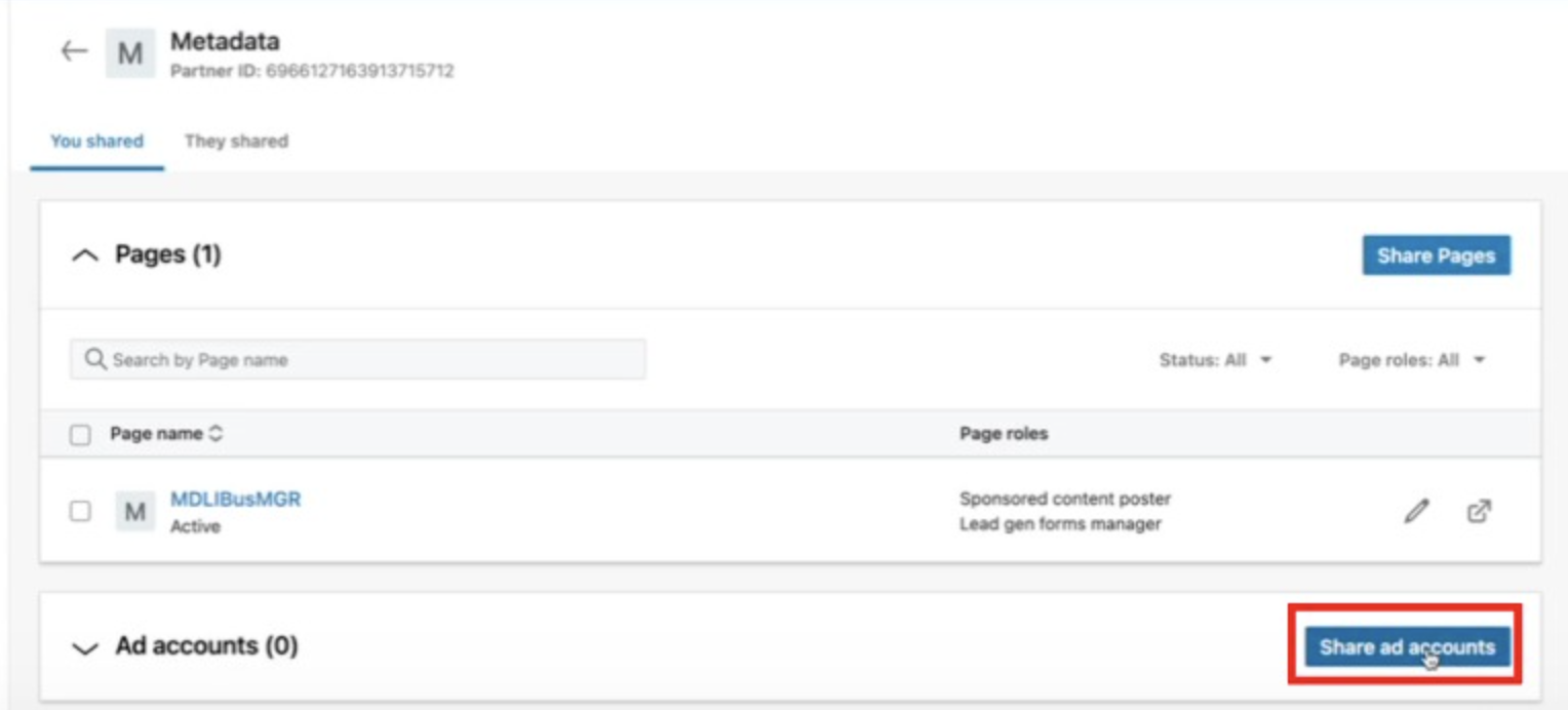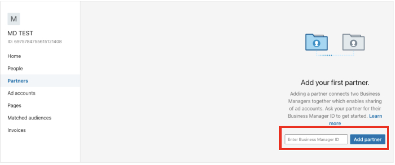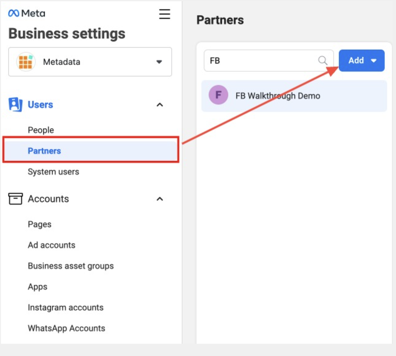 2. Select Partners and enter Metadata’s Business Manager ID of 6966127163913715712.