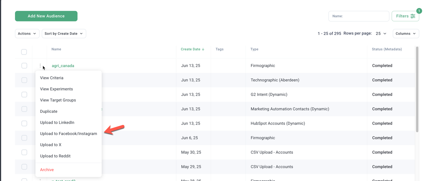 - Your Meta Ad account may be full since there is a maximum of 500 audiences that can be uploaded to Meta. To resolve this delete some audiences and try to upload again.